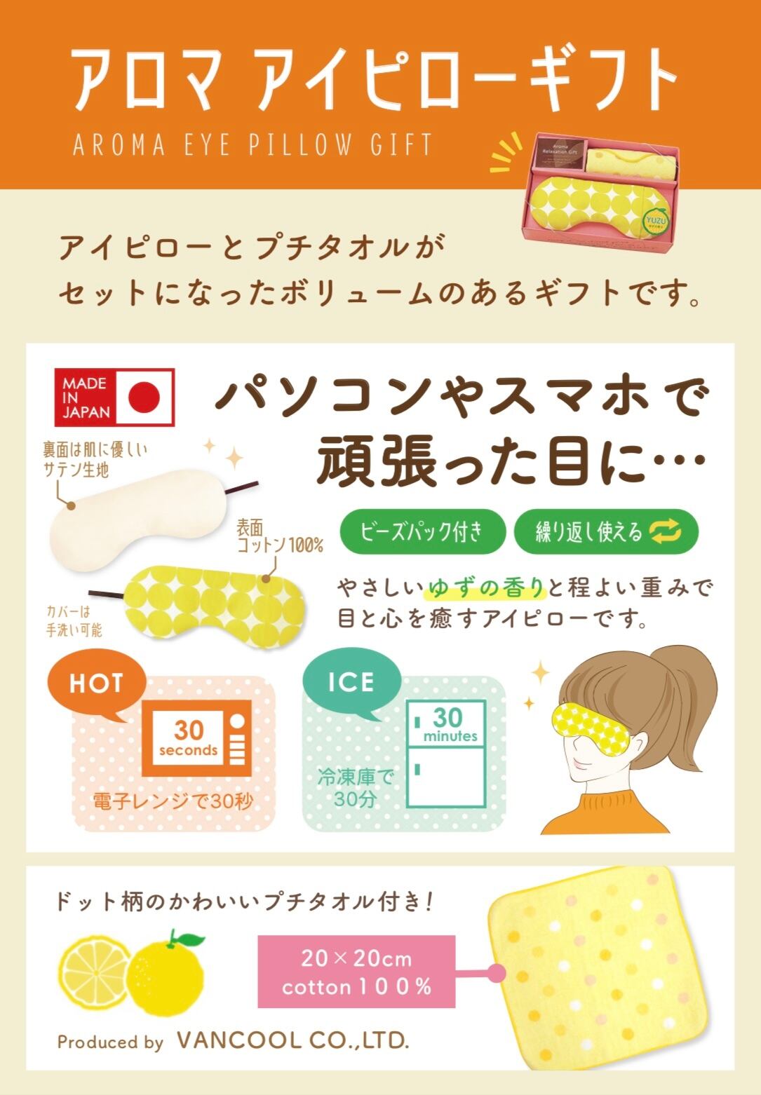 アロマアイピローギフト 【ゆずの優しい香りの日本製アイピローとプチタオルのギフト☆】人気 秋冬